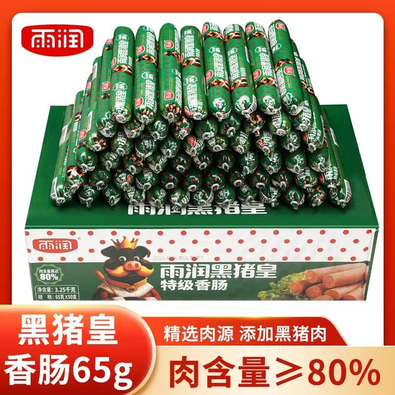 雨润黑猪皇火腿肠65g肉含量≥80%即食特级香肠整箱装批发肉肠零食